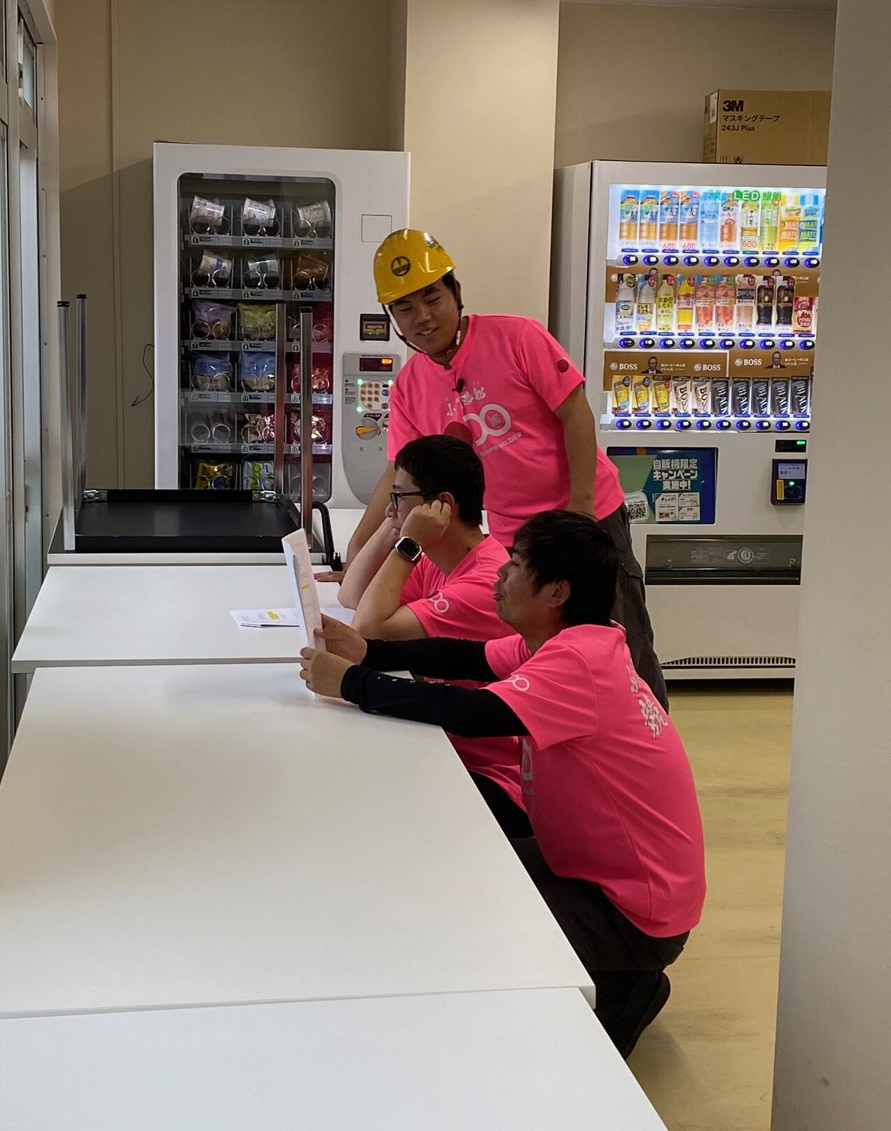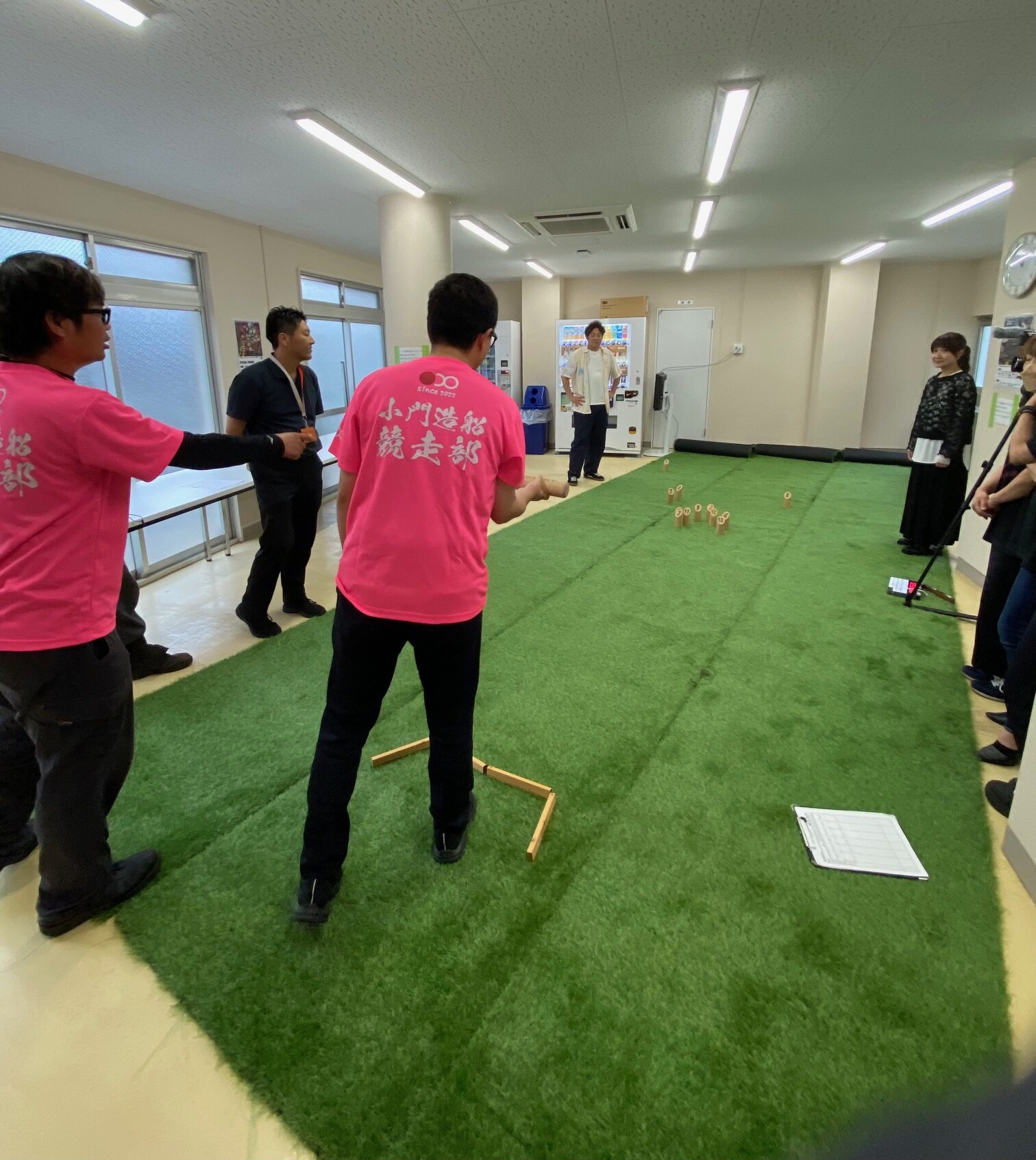 今回モルックに参加したのは営業部の稲冨さん、機関管理部の千田さん、尾田さんの3名で、MCのお二方と対決しました😄