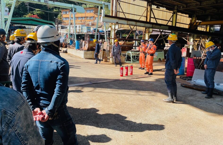さて、先日小門造船では下関中央消防署の方に来ていただき、消防・避難訓練を実施しました!