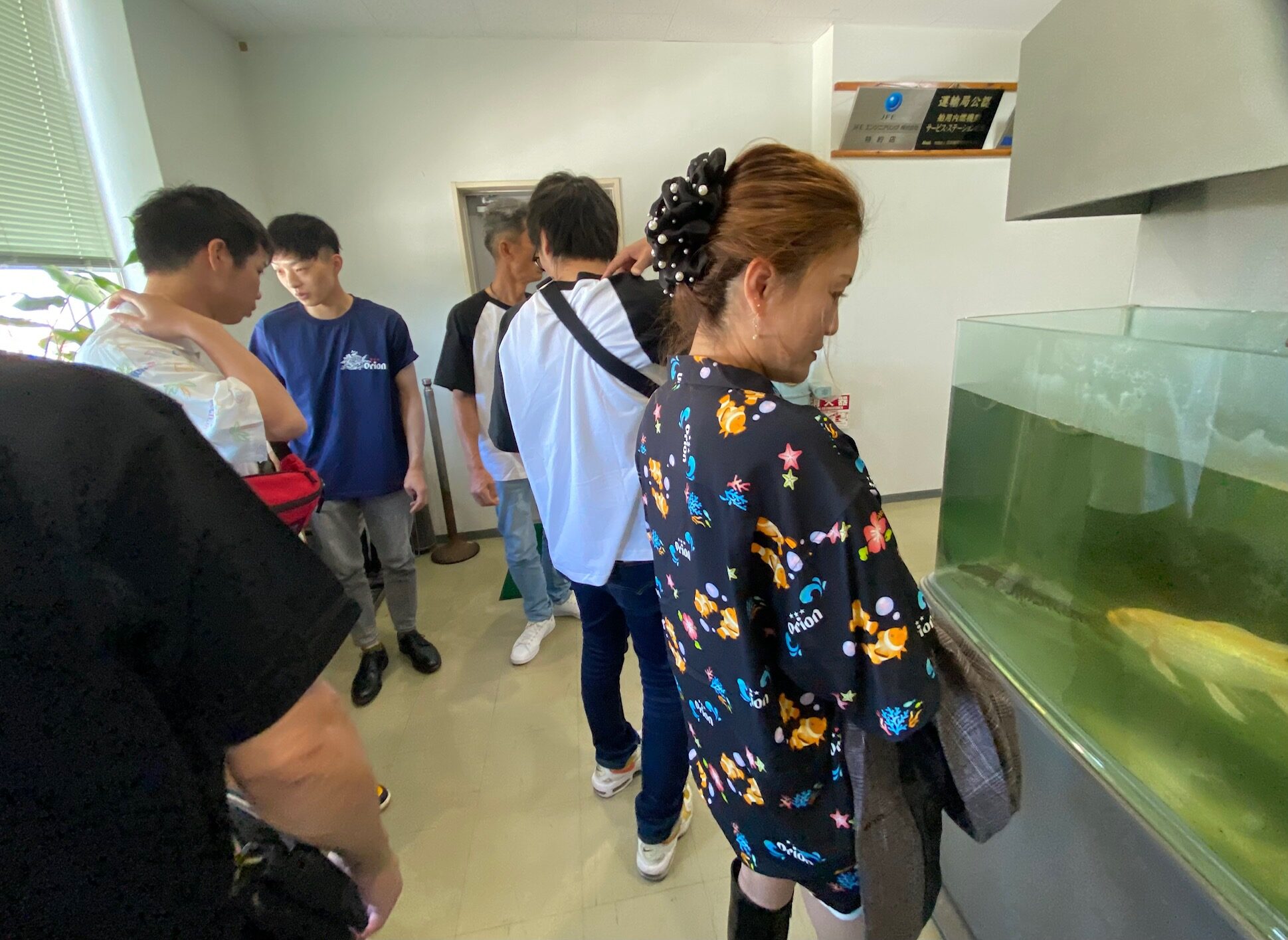 事務所には大きな水槽があって、みんな興味津々!!大きな魚が出迎えてくれました🐟